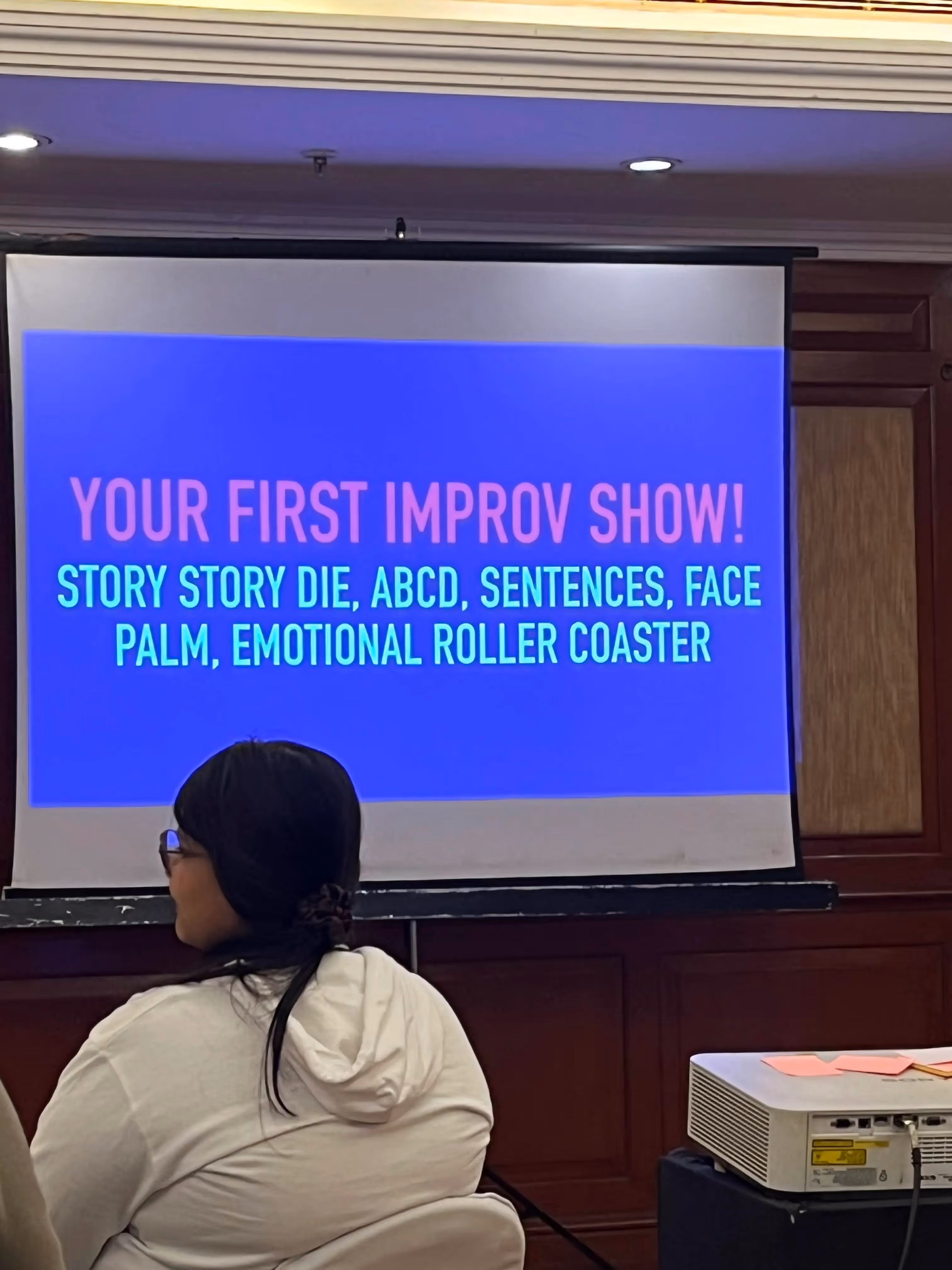 I was pretty lethargic after lunch and didn’t know what to expect from the Improv workshop. However, little did I know how much more my already full stomach could still take. As soon as we entered the Improv workshop, we knew that the next few hours were going to be full of energy and experiments. The kind we’d never done before.